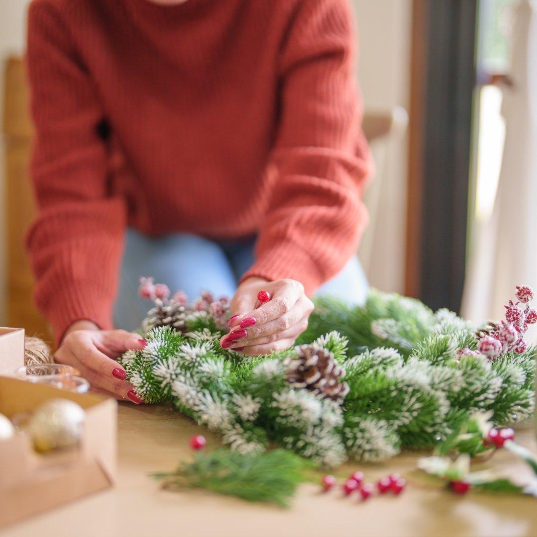 A Christmas wreath is the perfect place to start. Due to the fact the foliage isn’t thick, this one looks best if you start with a natural base such as willow or wicker. Next, insert the mistletoe in the gaps in the wreath ring – you may need to attach it with florist’s wire to keep it in place. Finally, add a decorative bow and your wreath is complete.